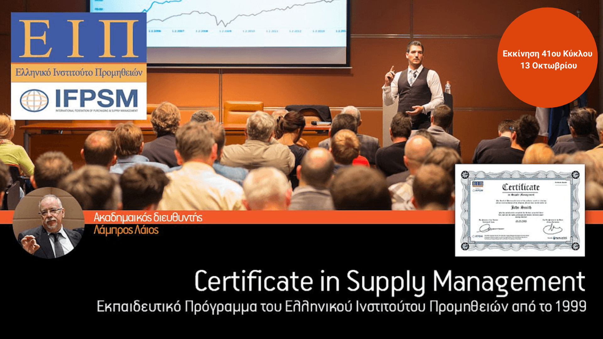 Tο Certificate in Supply Management στοχεύει στην εξειδίκευση γνώσεων με εισηγήσεις από καταξιωμένους επαγγελματίες που προκαλούν την ενεργή συμμετοχή και διευρύνουν τα πεδία γνώσης των στελεχών που εργάζονται στα τμήματα Purchasing - Procurement - Supply Chain Management - Προμηθειών - Αγορών.